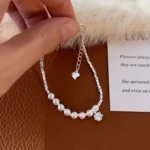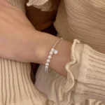 Elegant and sophisticated pearl and silver bracelet for women; a stylish and unique piece of jewelry with a touch of luxury.