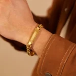Stainless Steel Gold Color Bracelet Men Women Vintage Cuban Chain Bracelet Jewelry Gift