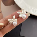 Elegant and stylish pearl earrings with a bow design – a unique, minimalist, and versatile accessory for women.