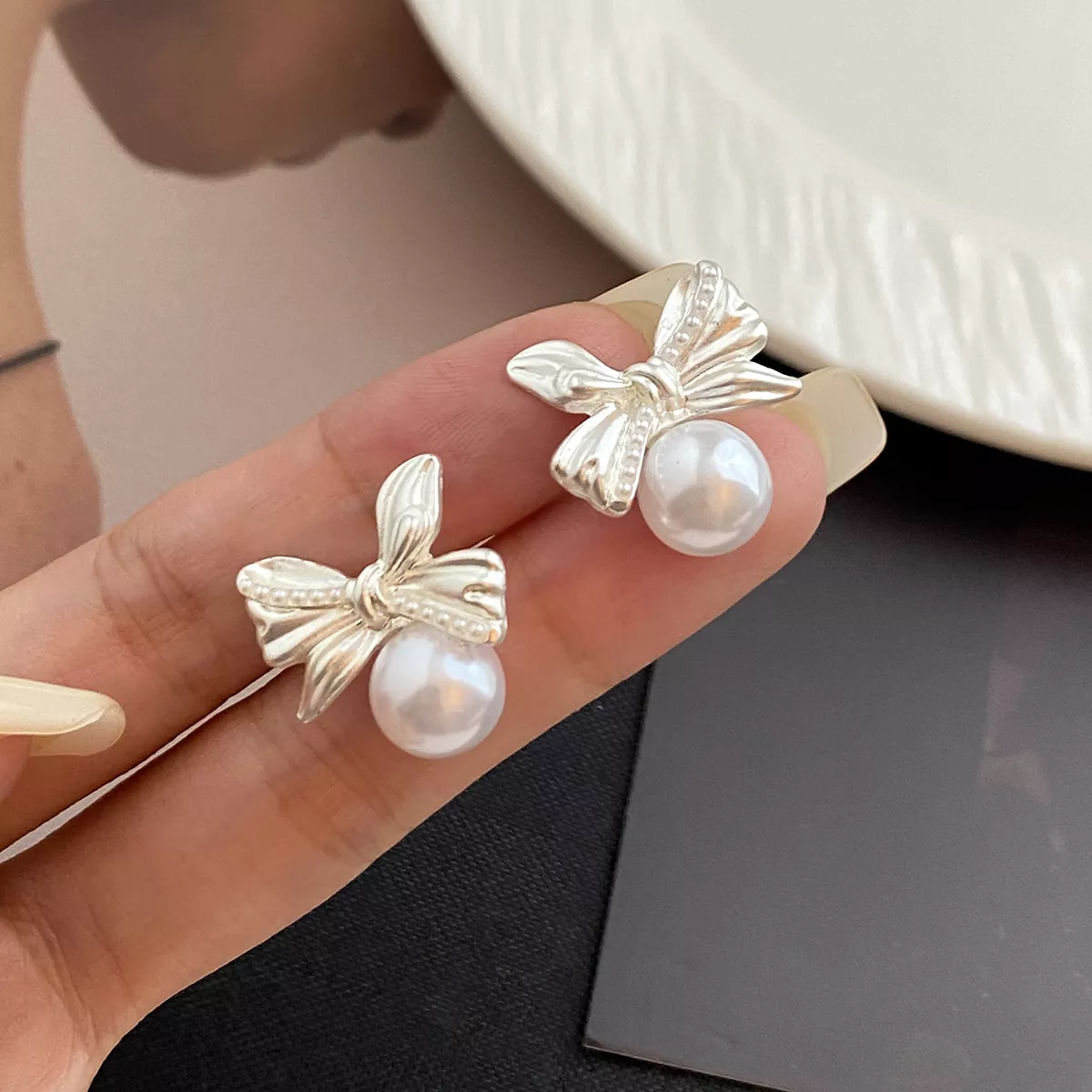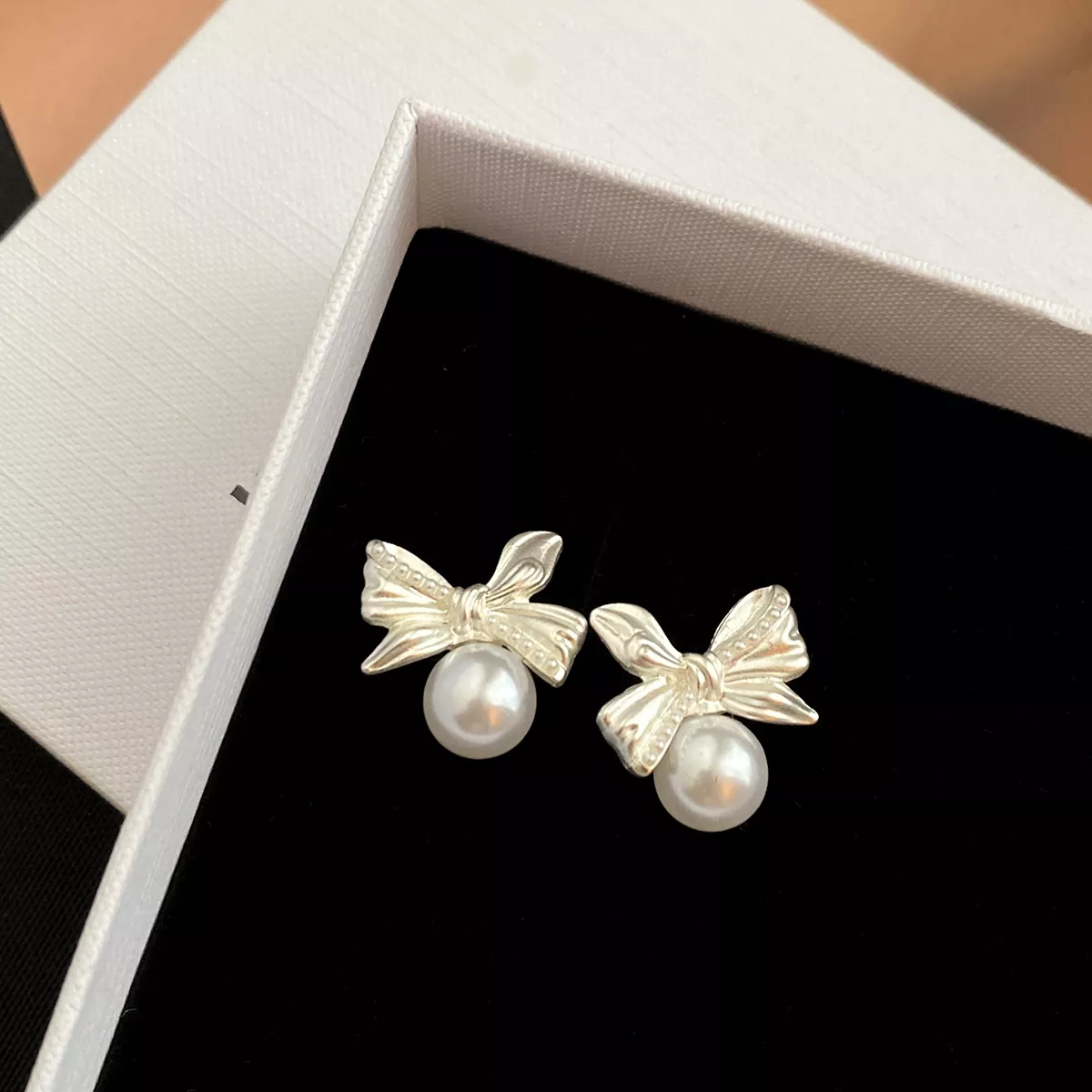 Elegant and stylish pearl earrings with a bow design – a unique, minimalist, and versatile accessory for women.