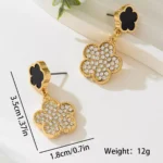 Fashionable and charming European and American classic style metal black clover glass diamond ladies earrings