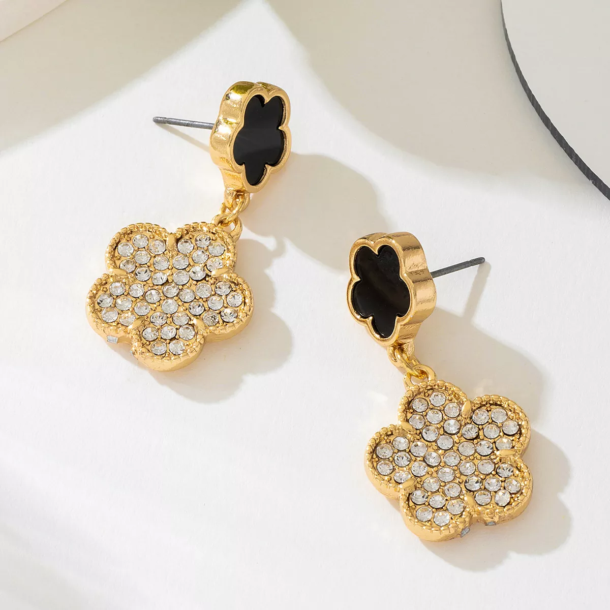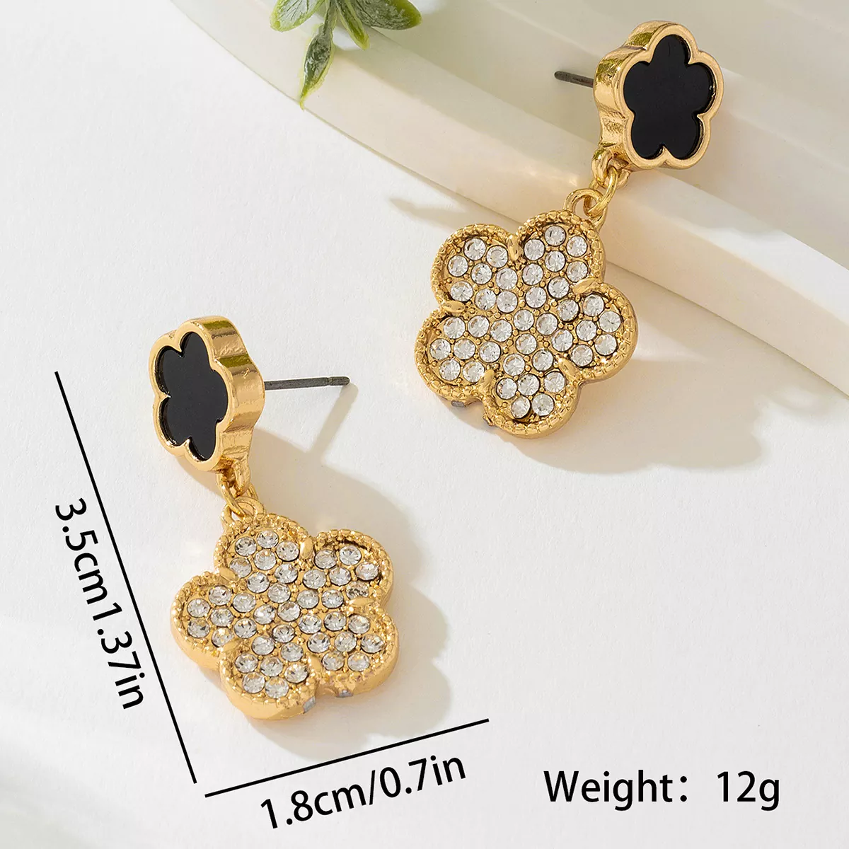 Fashionable and charming European and American classic style metal black clover glass diamond ladies earrings