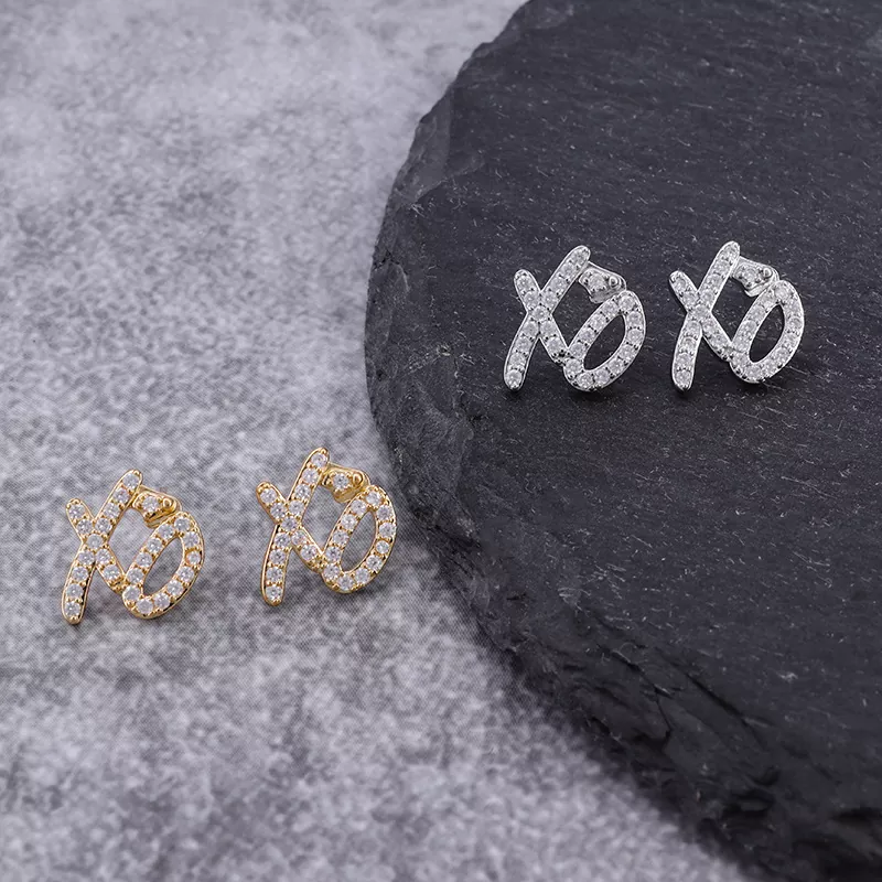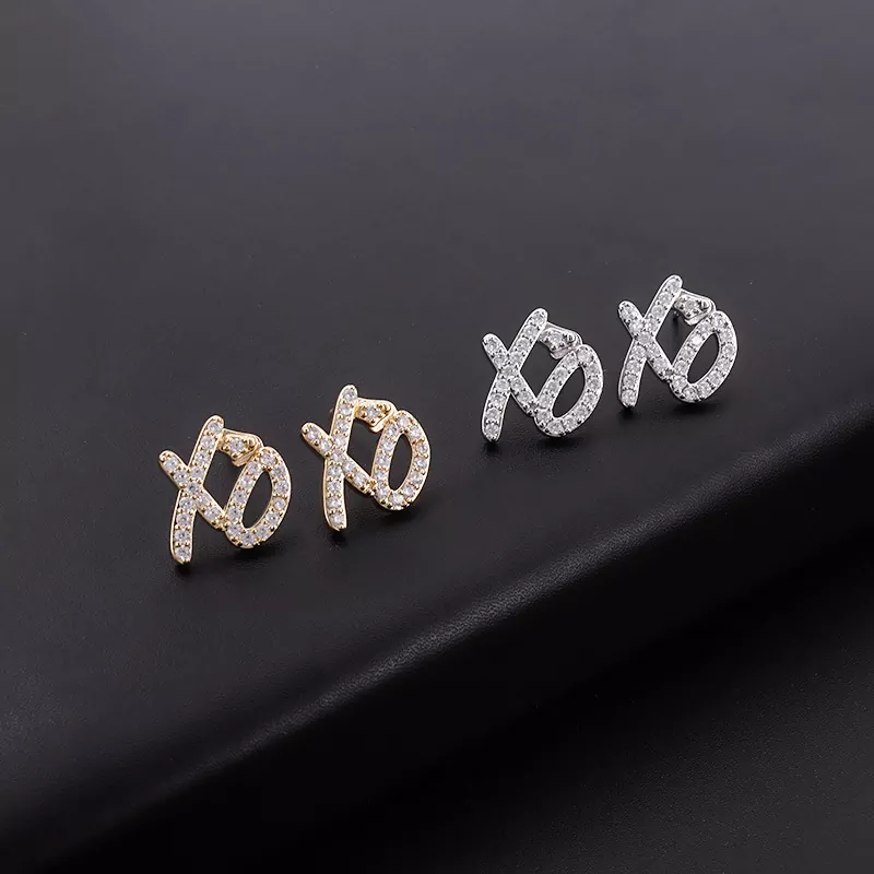 Hip-hop zircon XO letter copper-plated earrings for men and women rapper party street jewelry