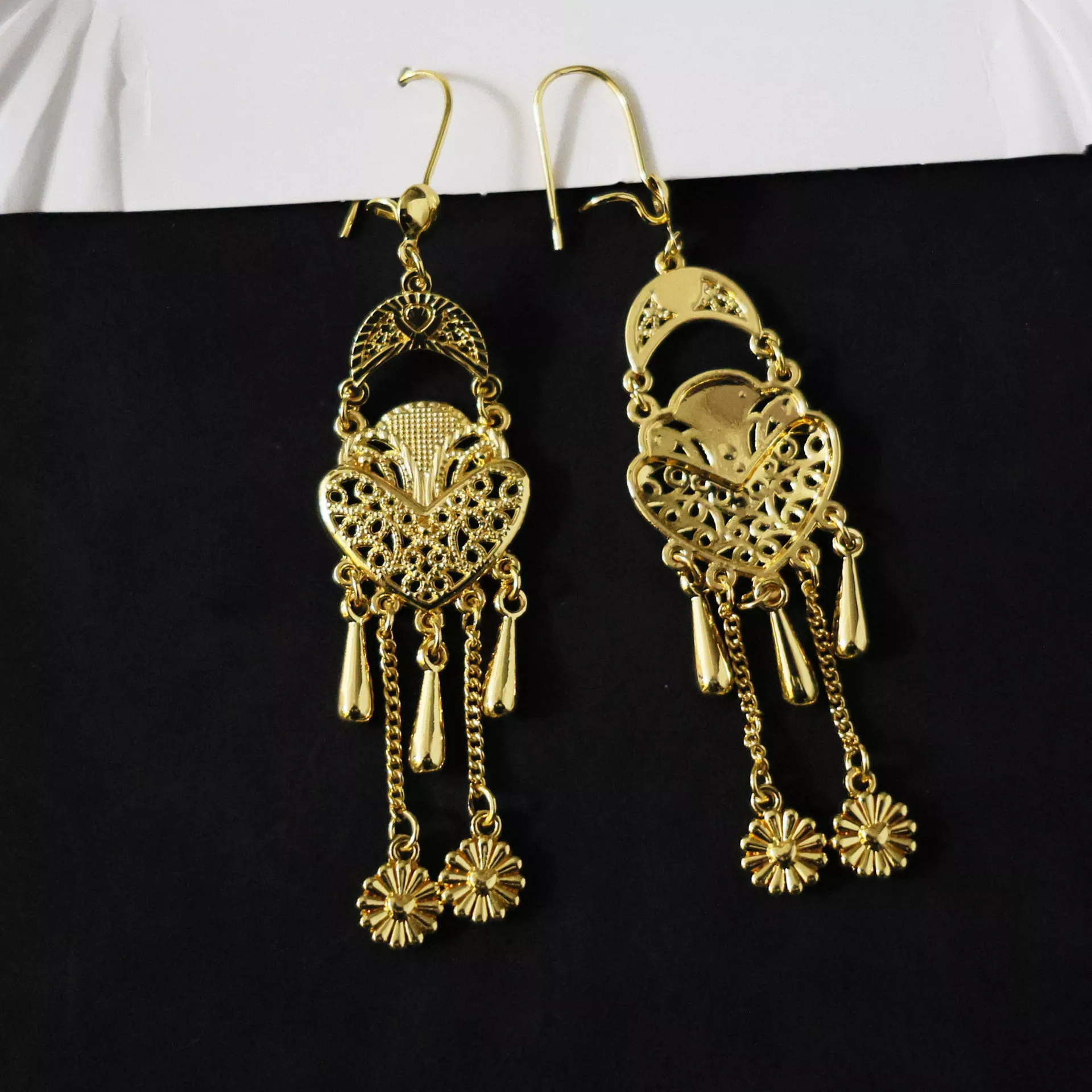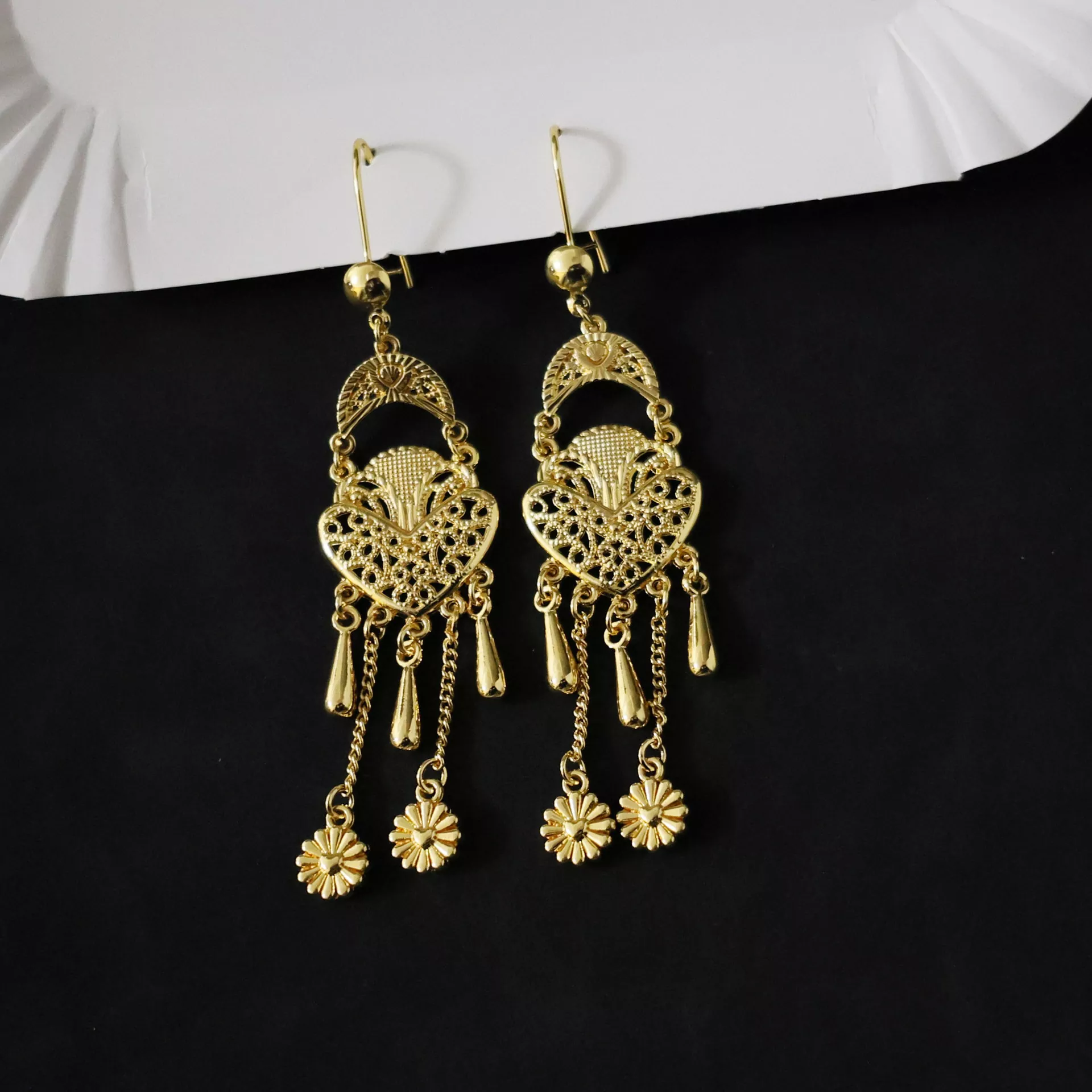 Gold Metal Tassel Earrings Women’s Long Exquisite Light Luxury Retro Fashion Hollow Love Earrings