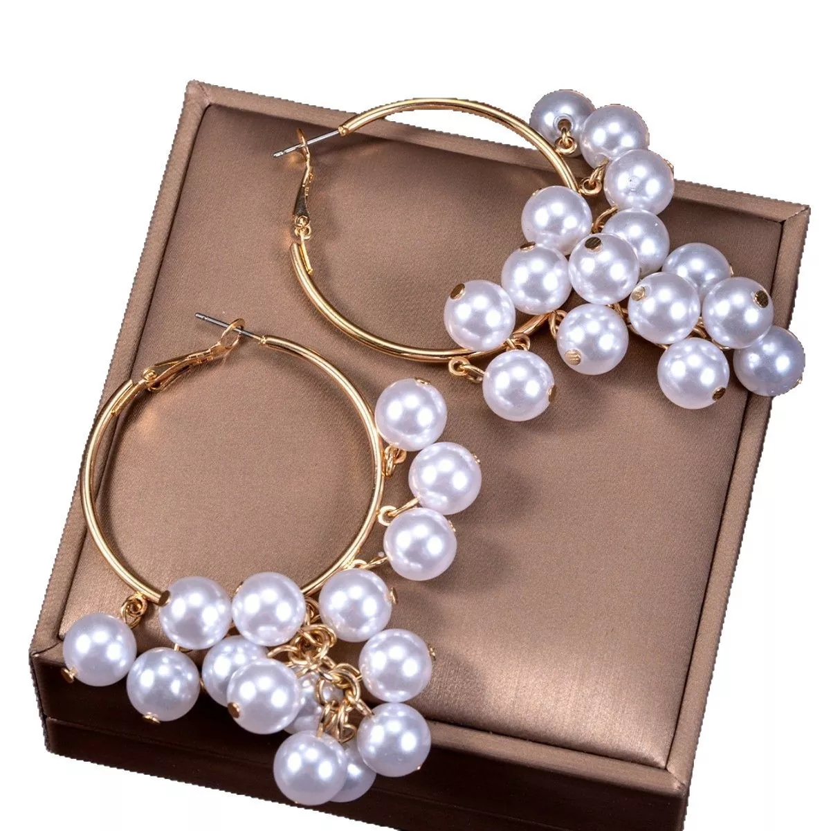Niche design C hoop earrings gold natural freshwater pearl exaggerated earrings earrings