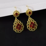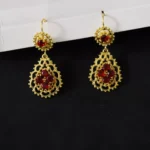 Ruby flower earrings new earrings women’s temperament earrings imitation gold sand gold jewelry