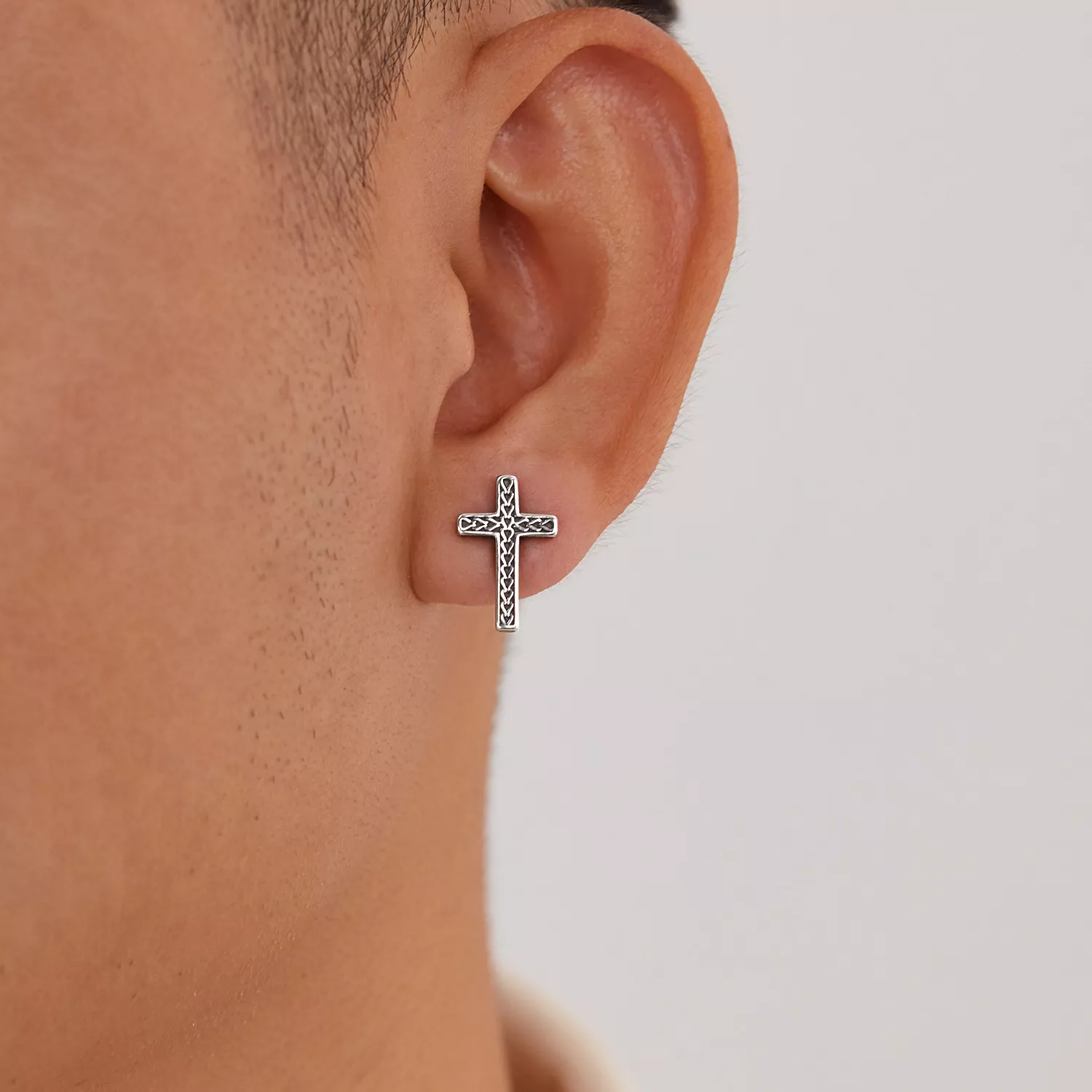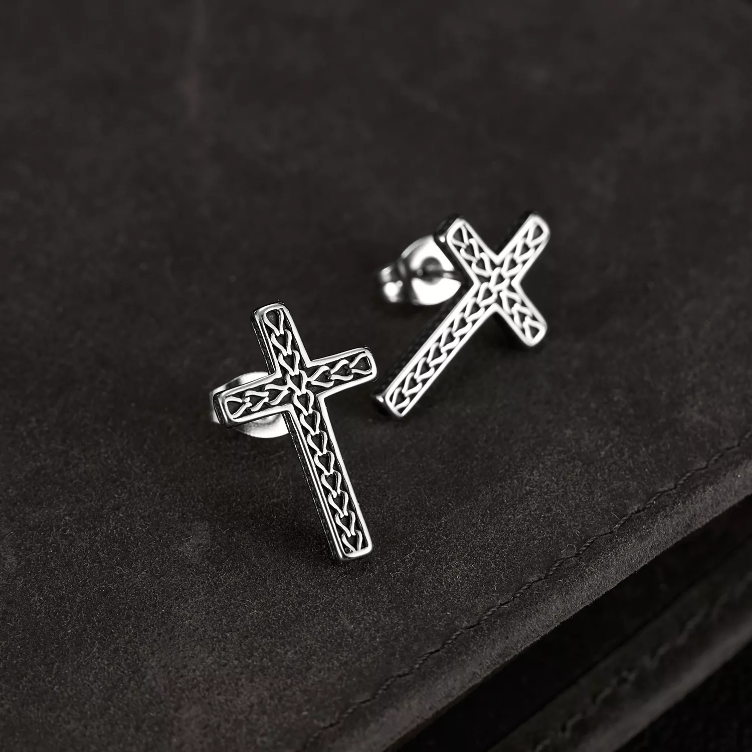 High Quality Men’s Earrings Stainless Steel Cross Earring Stud for Men Jewelry