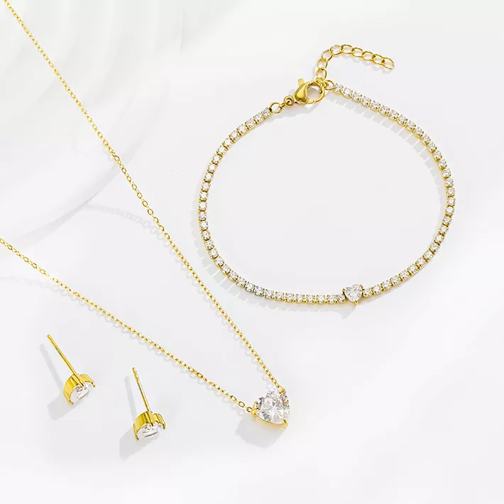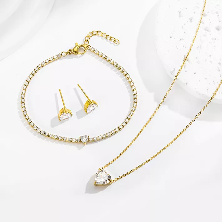 Cross-border niche love zirconia pendant cross chain female simple temperament ins wind titanium steel 18k gold-plated necklace set