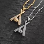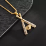Hip-hop baseball bat hip-hop sports full diamond gold-plated necklace men’s fashion accessories