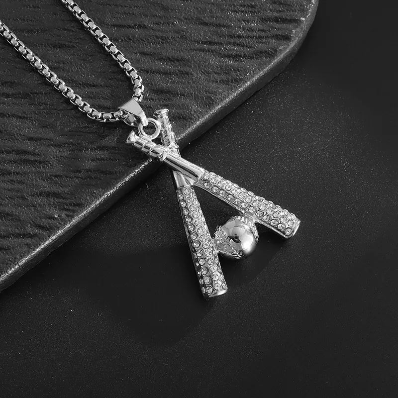 Hip-hop baseball bat hip-hop sports full diamond gold-plated necklace men’s fashion accessories
