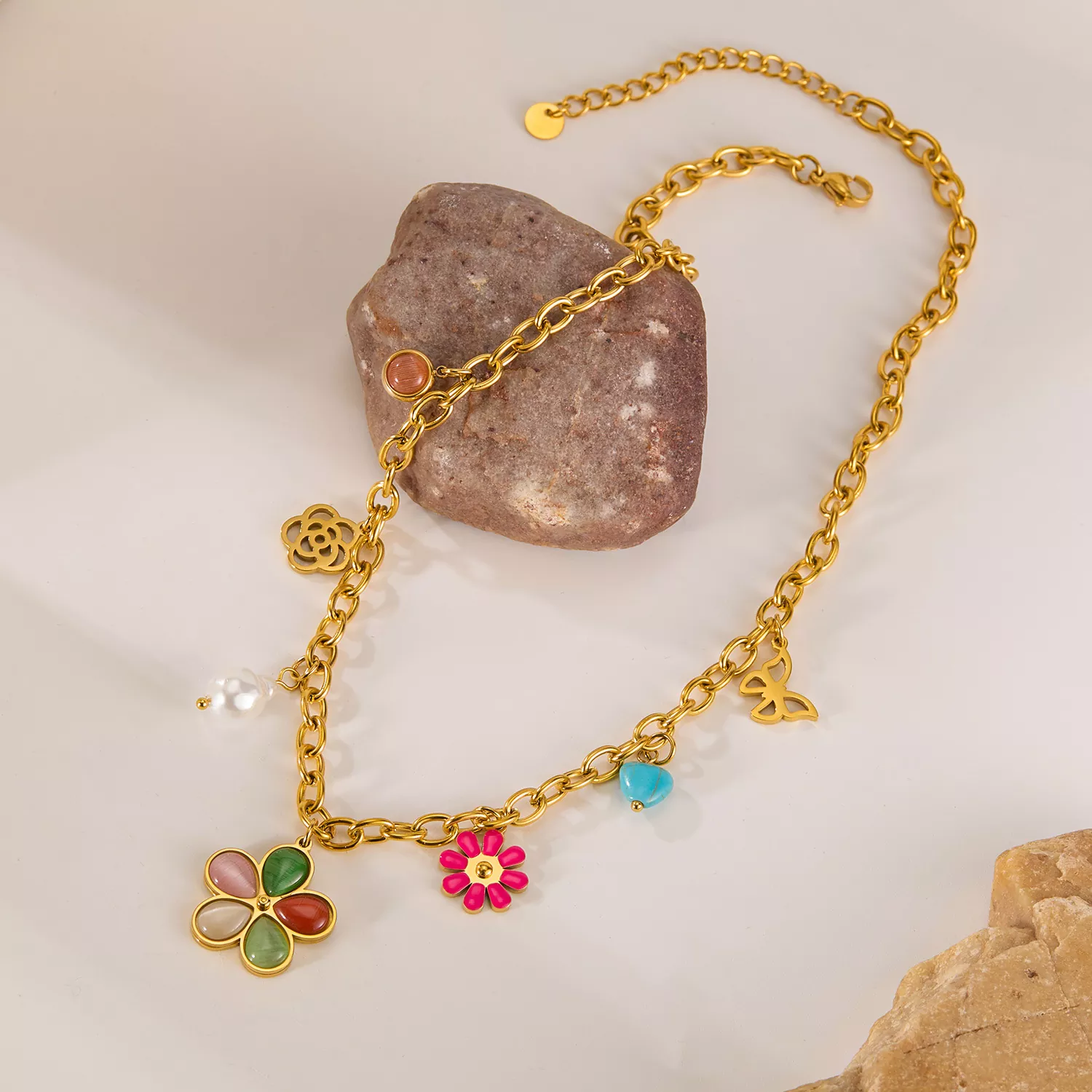 Custom Charm Stainless Steel Necklace Gold Charm Chunky Necklace for Women Personalized Jewelry Birthday Gift