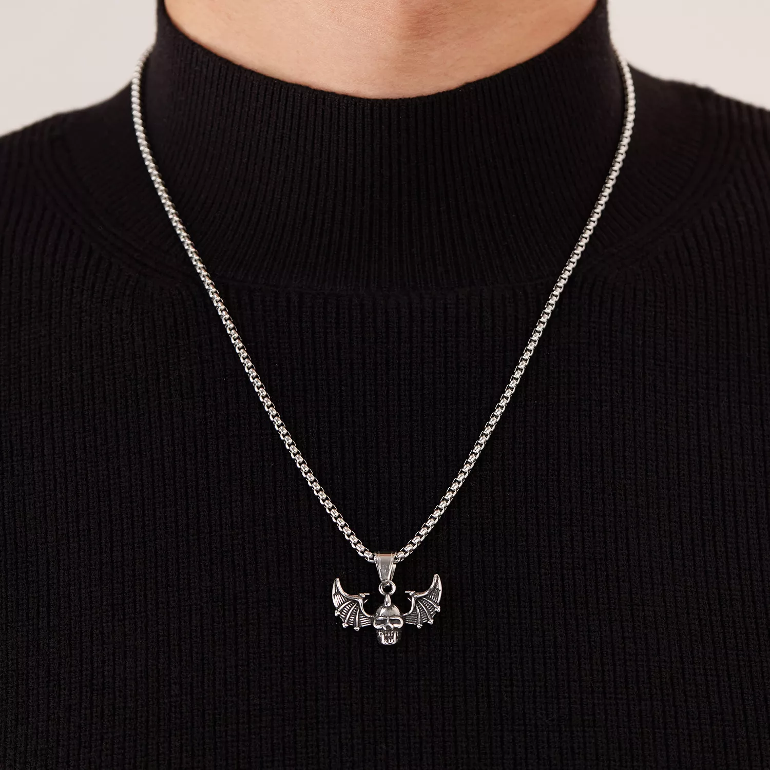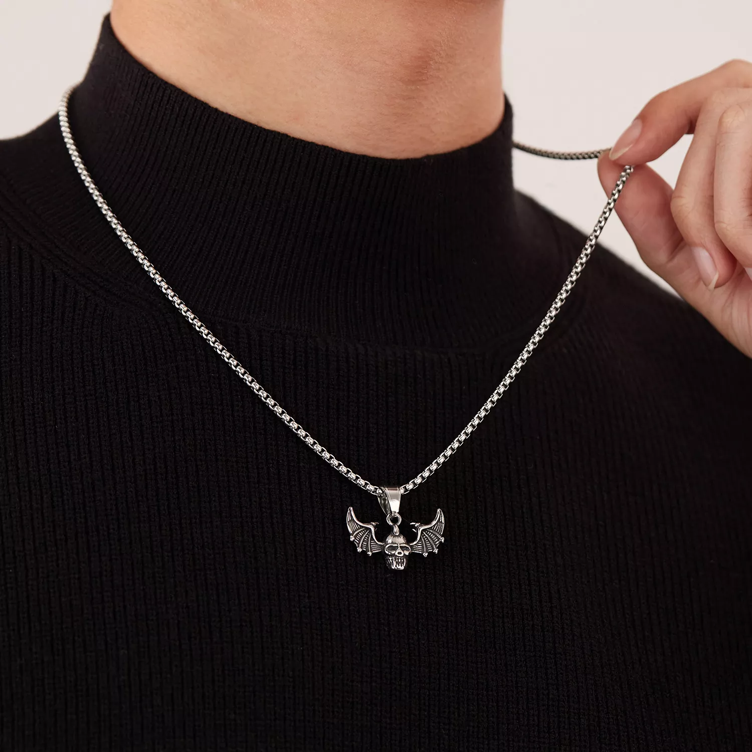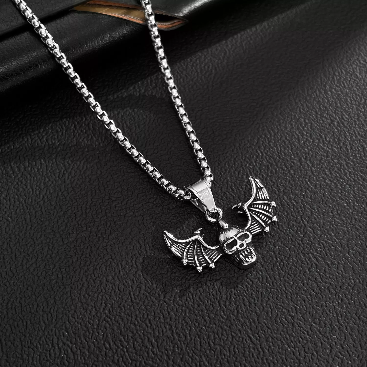Gothic Jewelry Halloween Gift Stainless Steel Motor Skull Bat Wings Pendant Biker Punk Cool Animal Jewelry for Men Wholesale