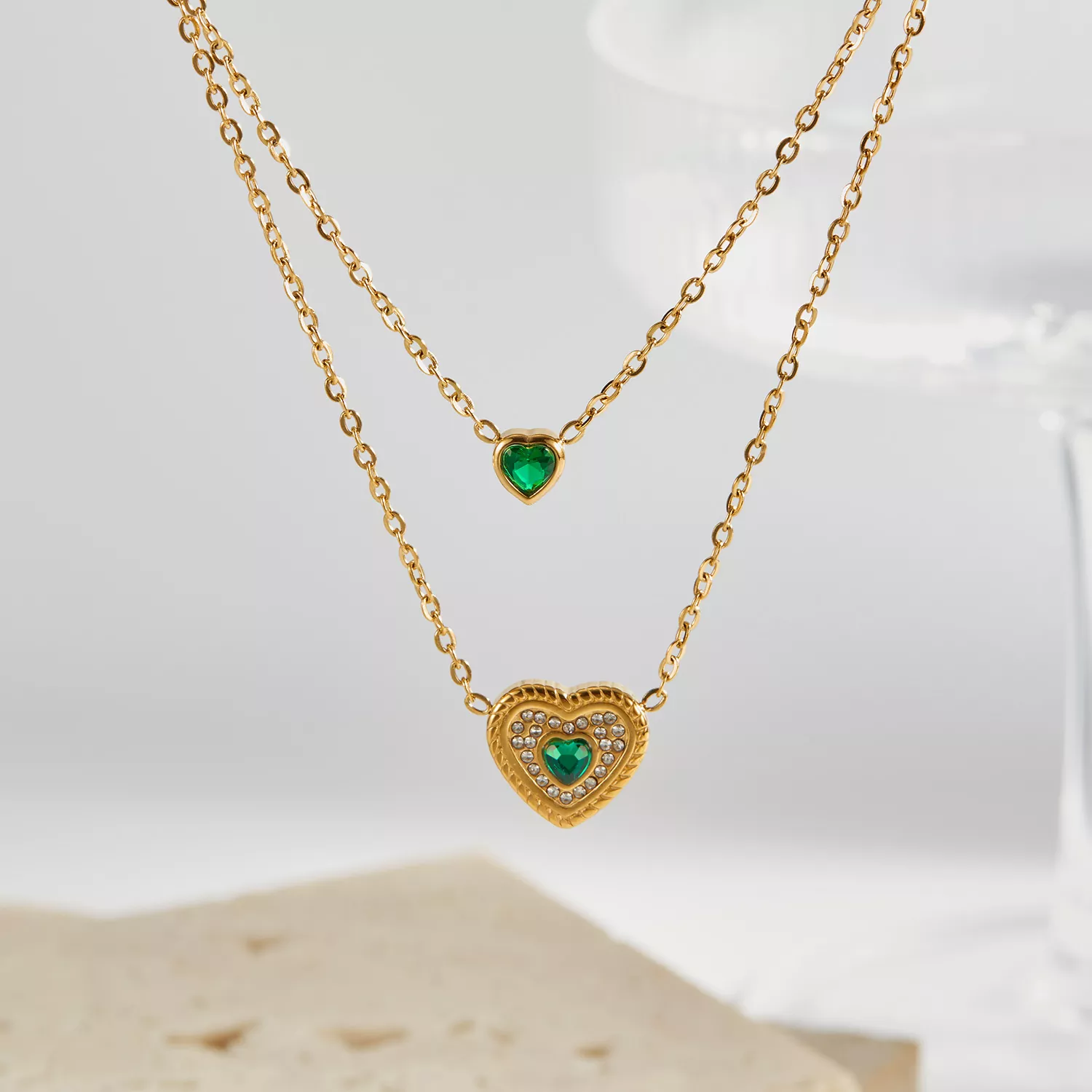 Luxury love Necklace CZ Crystal Women Ladies Pendant Heart Jewelry Chain 18k Gold Plated Stainless Steel Necklace Valentine Day