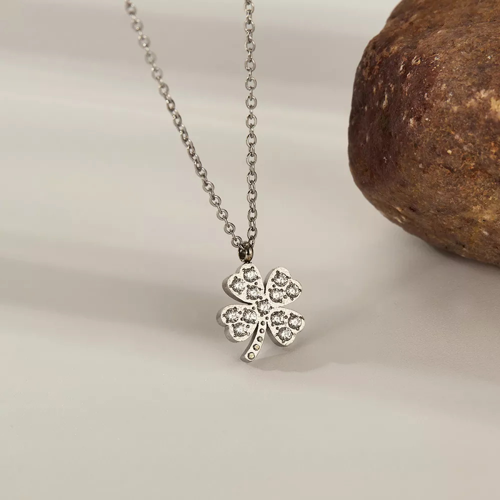 Stainless Steel Clover Leaf Charm Necklace with Link Chain Fashionable Trendy Jewelry for Men Women Gift