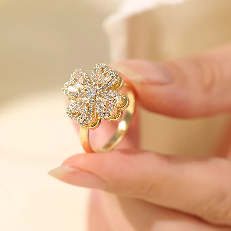 Colorfast rotating four-leaf clover ring for women, cross-border luxury niche design, high-end ring jewelry Colorfast rotating four-leaf clover ring for women, cross-border luxury niche design, high-end ring jewelry