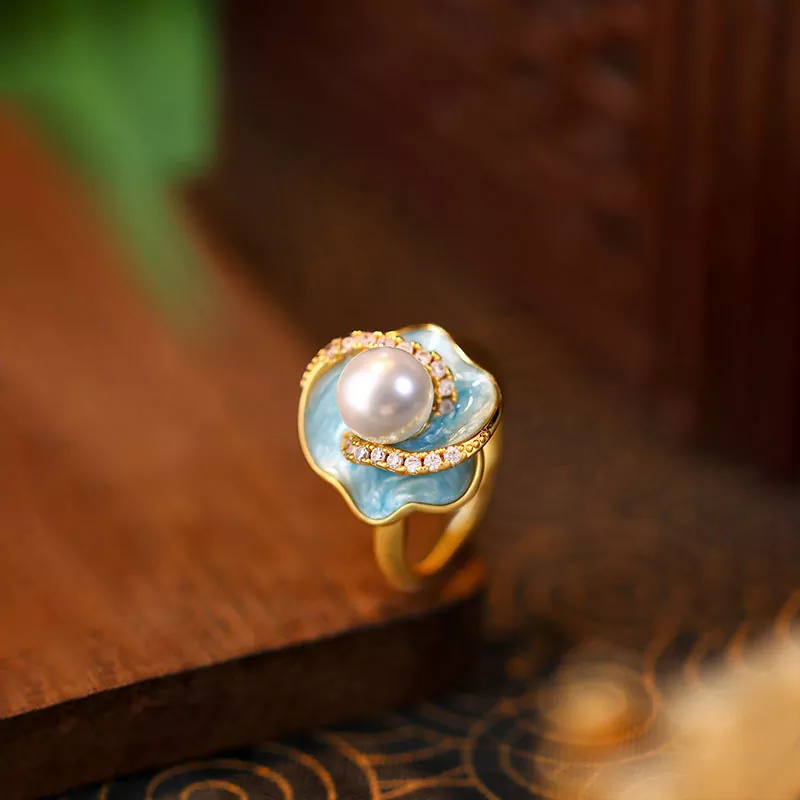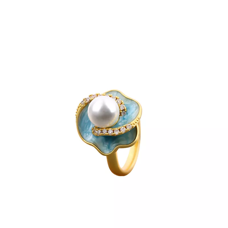 Mint Mambo Green Pearl Ring Women’s Light Luxury High-end Non-fading Ring