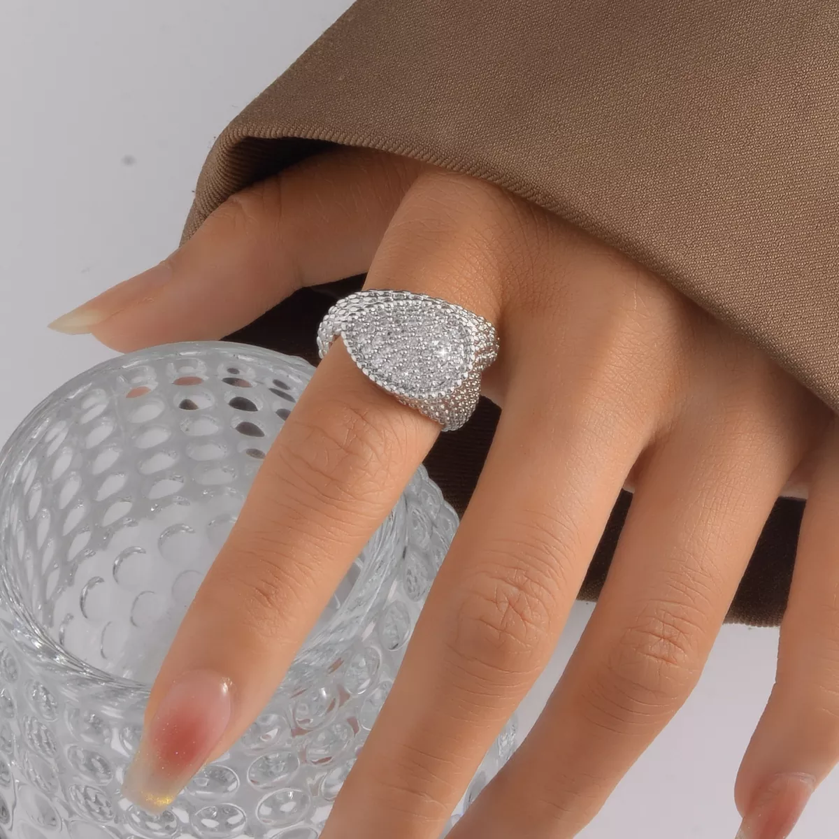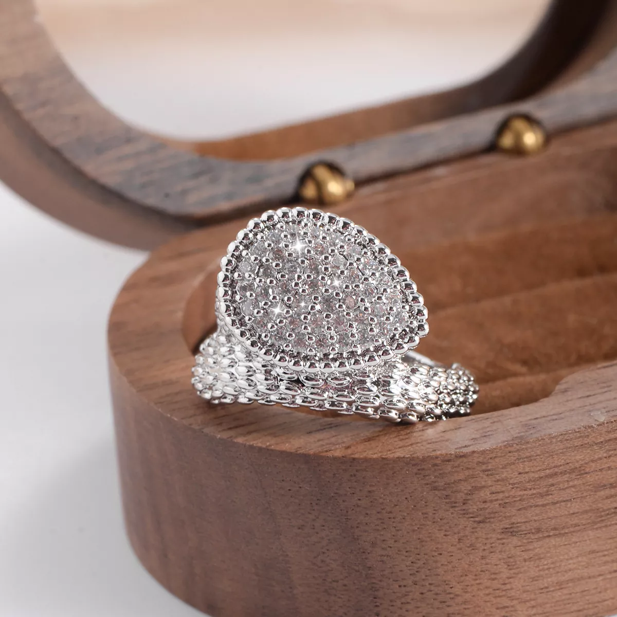 Bohemian style cross teardrop-shaped ring female temperament light luxury niche design ring high-end hand jewelry