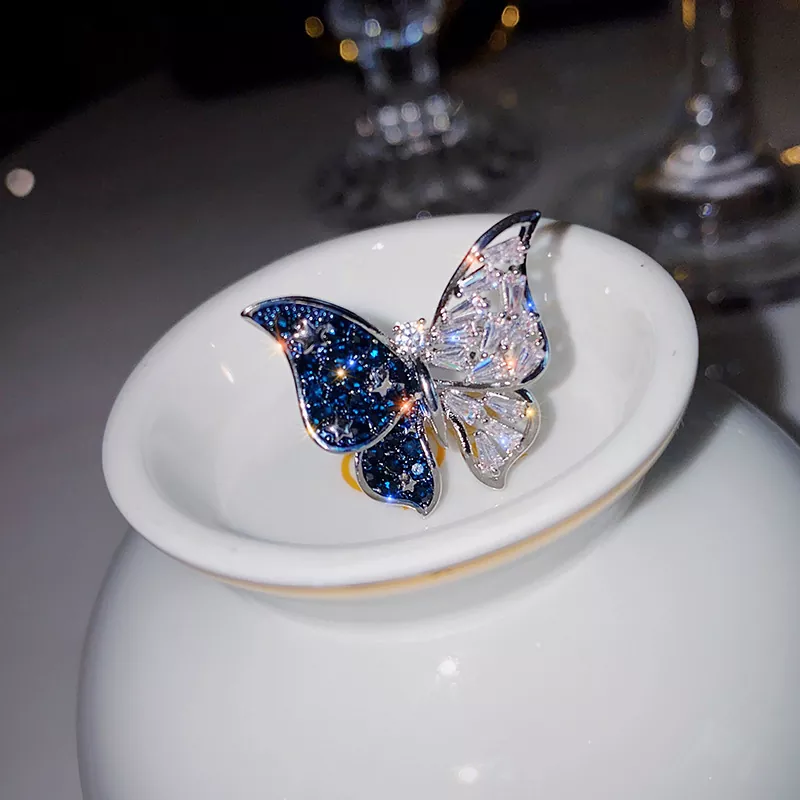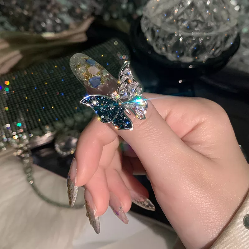 Dark blue diamond butterfly ring super flash ins female temperament ring