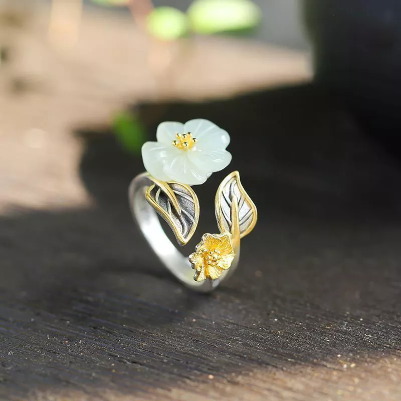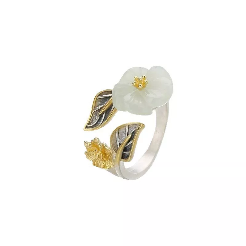 Hotan ring for women, high-end niche design, personality and versatile palace retro peace buckle ring
