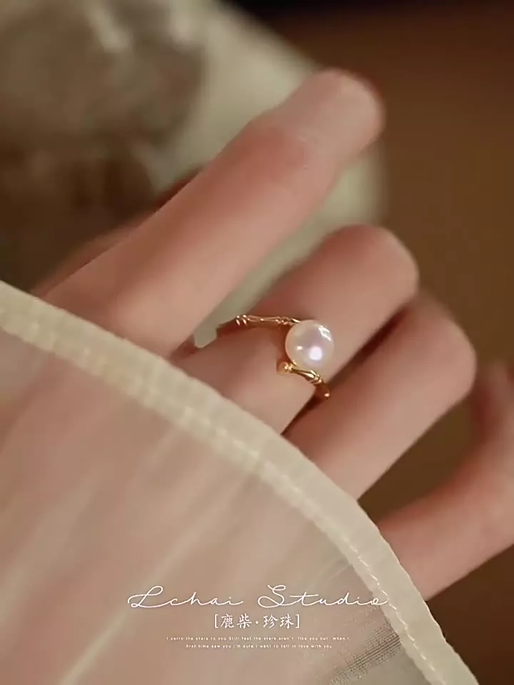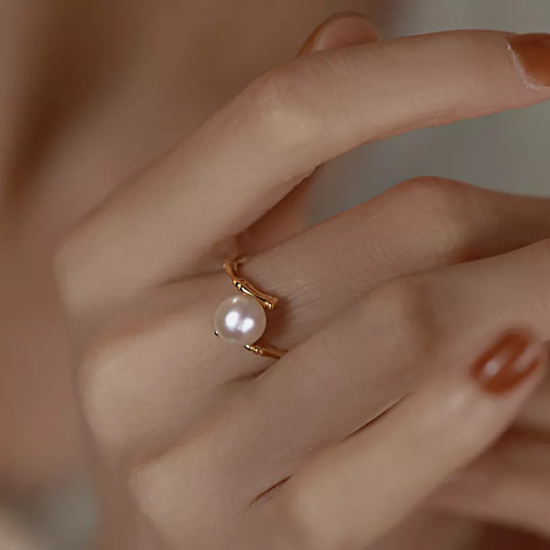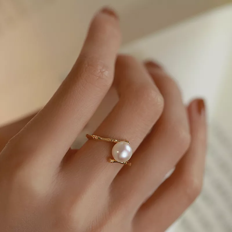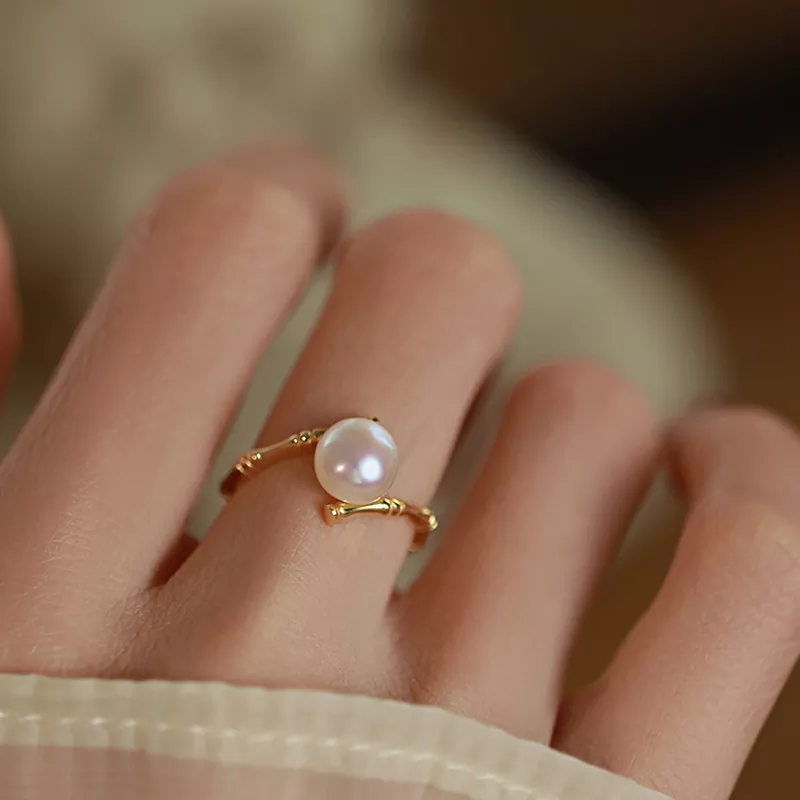 Natural freshwater pearl ring for women, niche design, open index finger ring, light luxury, high-end, fashionable and personalized ring trend