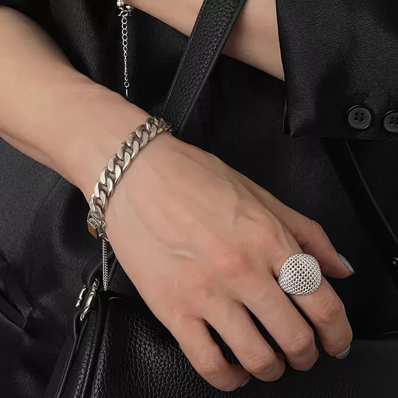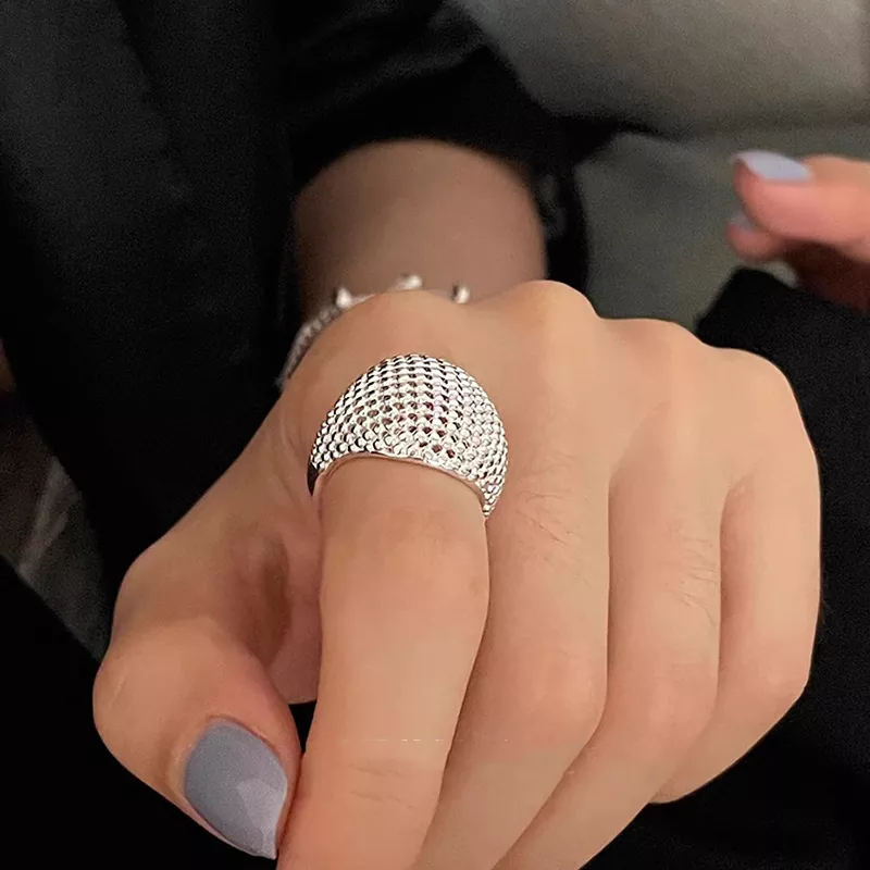 Neutral style ring female hollow grid temperament personality exquisite ins style index finger ring open ring