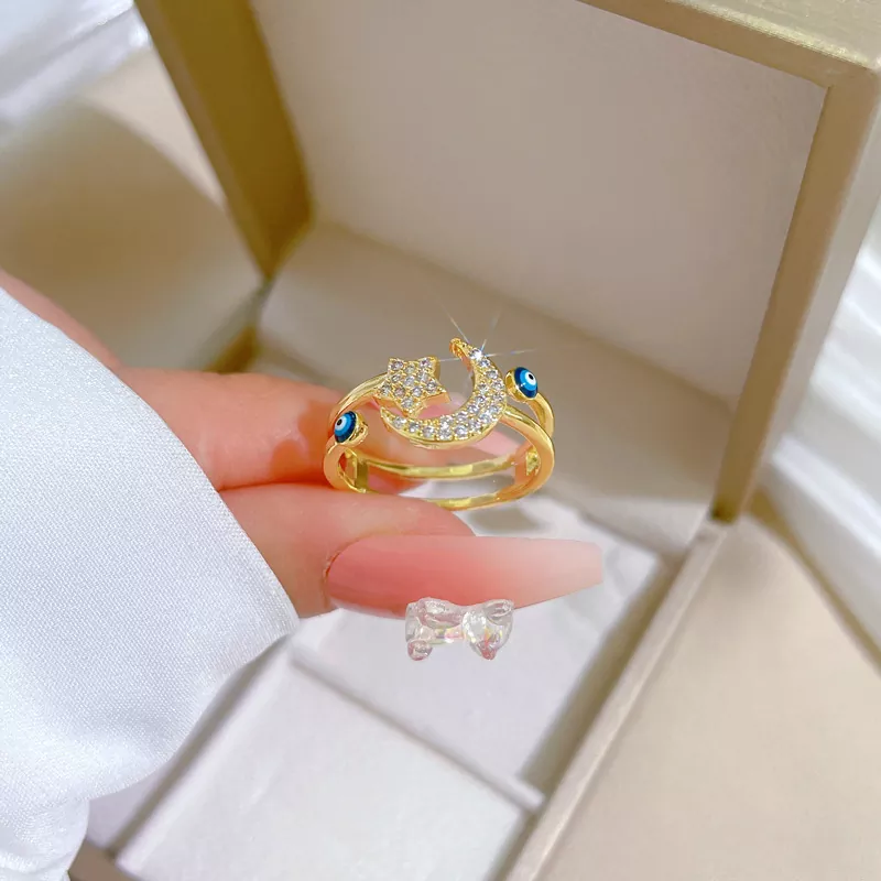 Open-Set Star & Moon Fashion Micro-Pavé Light Luxury Ring Index Finger Ring Influencer-Style Minimalist Aesthetic