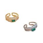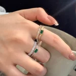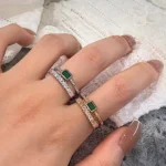 Peacock green full diamond double layer ring female niche index finger ring female simple temperament open ring