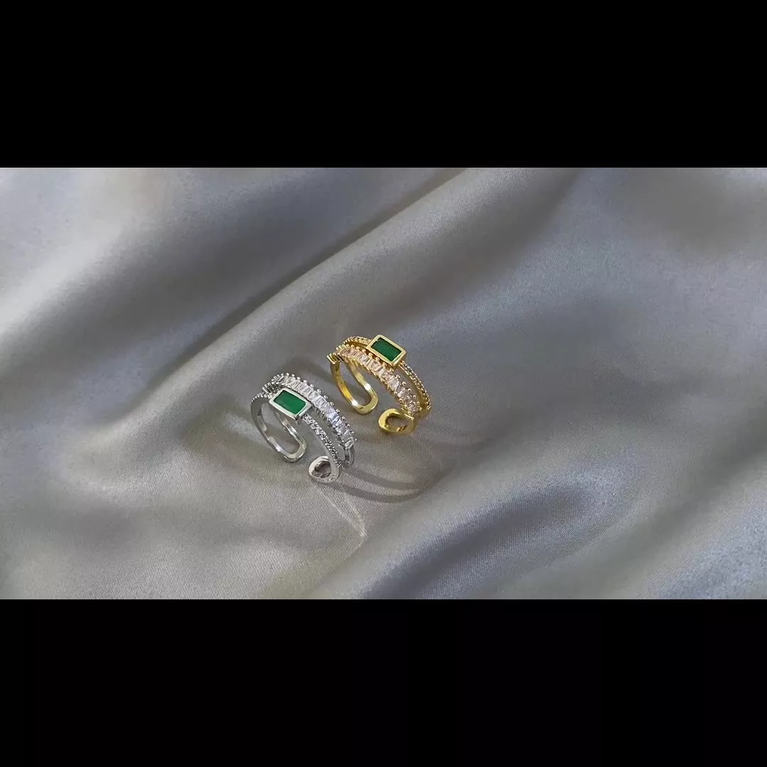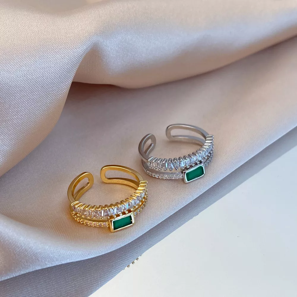 Peacock green full diamond double layer ring female niche index finger ring female simple temperament open ring