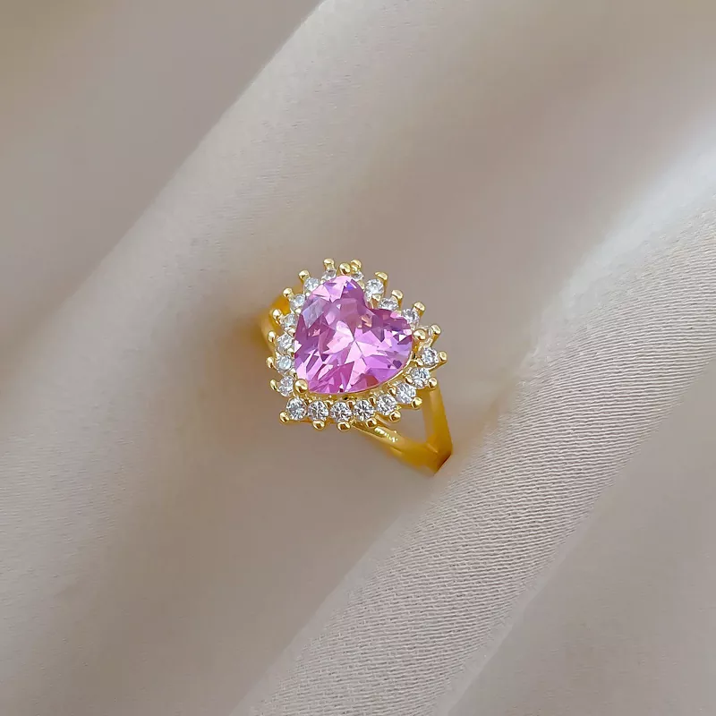 Pink wedding ring opening adjustable simple hand jewelry ring couple ring