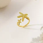 European and American fashion starfish titanium steel ring female niche design temperament trend stainless steel seaside holiday style ring