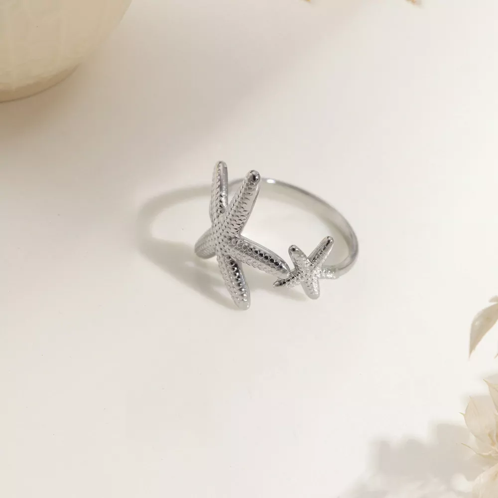 European and American fashion starfish titanium steel ring female niche design temperament trend stainless steel seaside holiday style ring