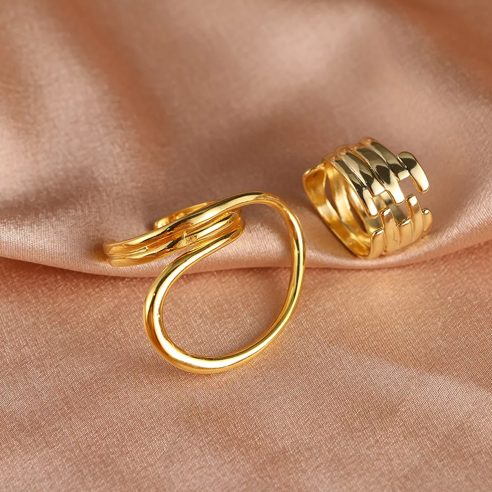 European and American gold exaggerated line ring female ins fashion network celebrity temperament personality hip hop disco open index finger ring