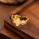 European and American stainless steel jewelry retro elegant flower ring female hydraulic opening temperament fashion advanced index finger ring