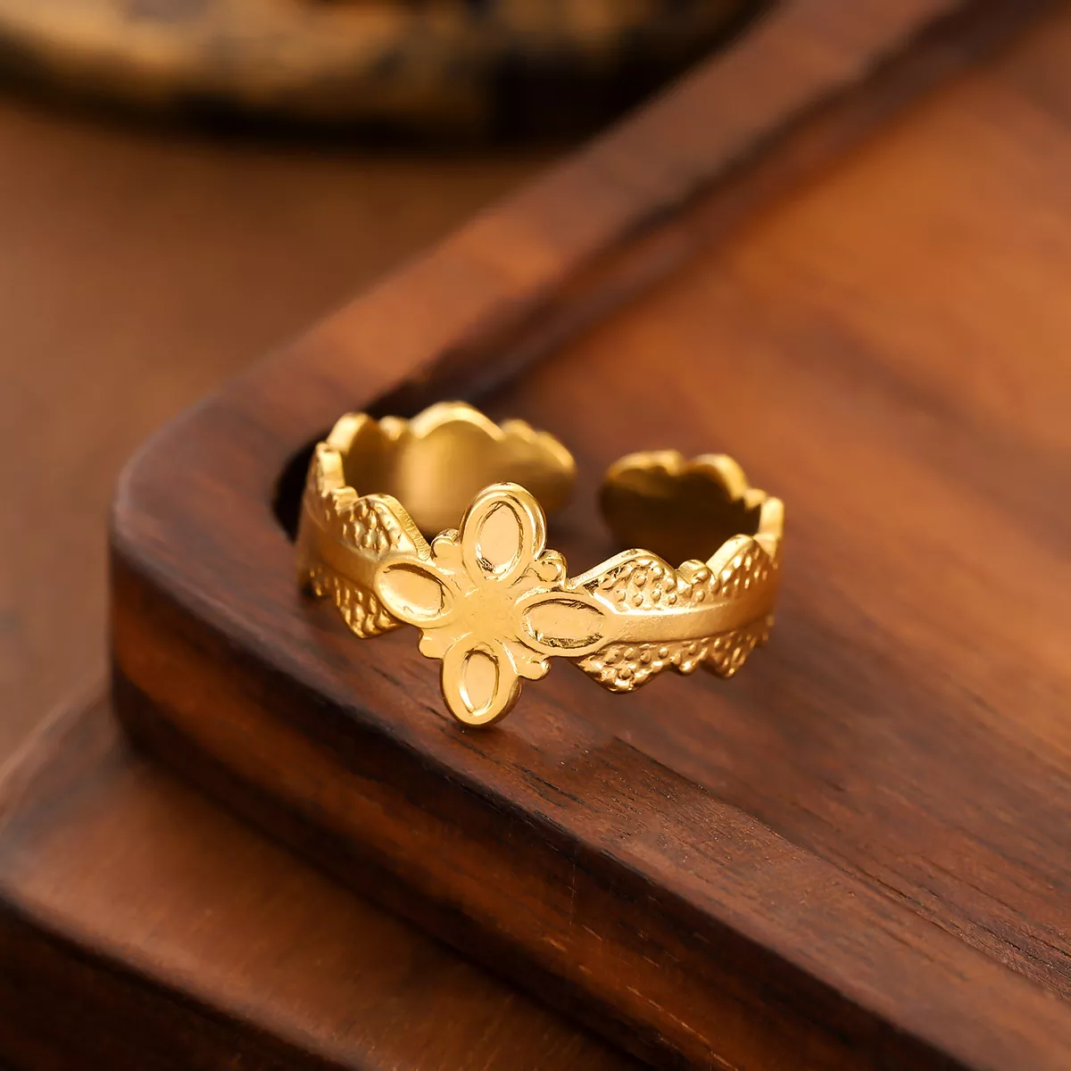 European and American stainless steel jewelry retro elegant flower ring female hydraulic opening temperament fashion advanced index finger ring