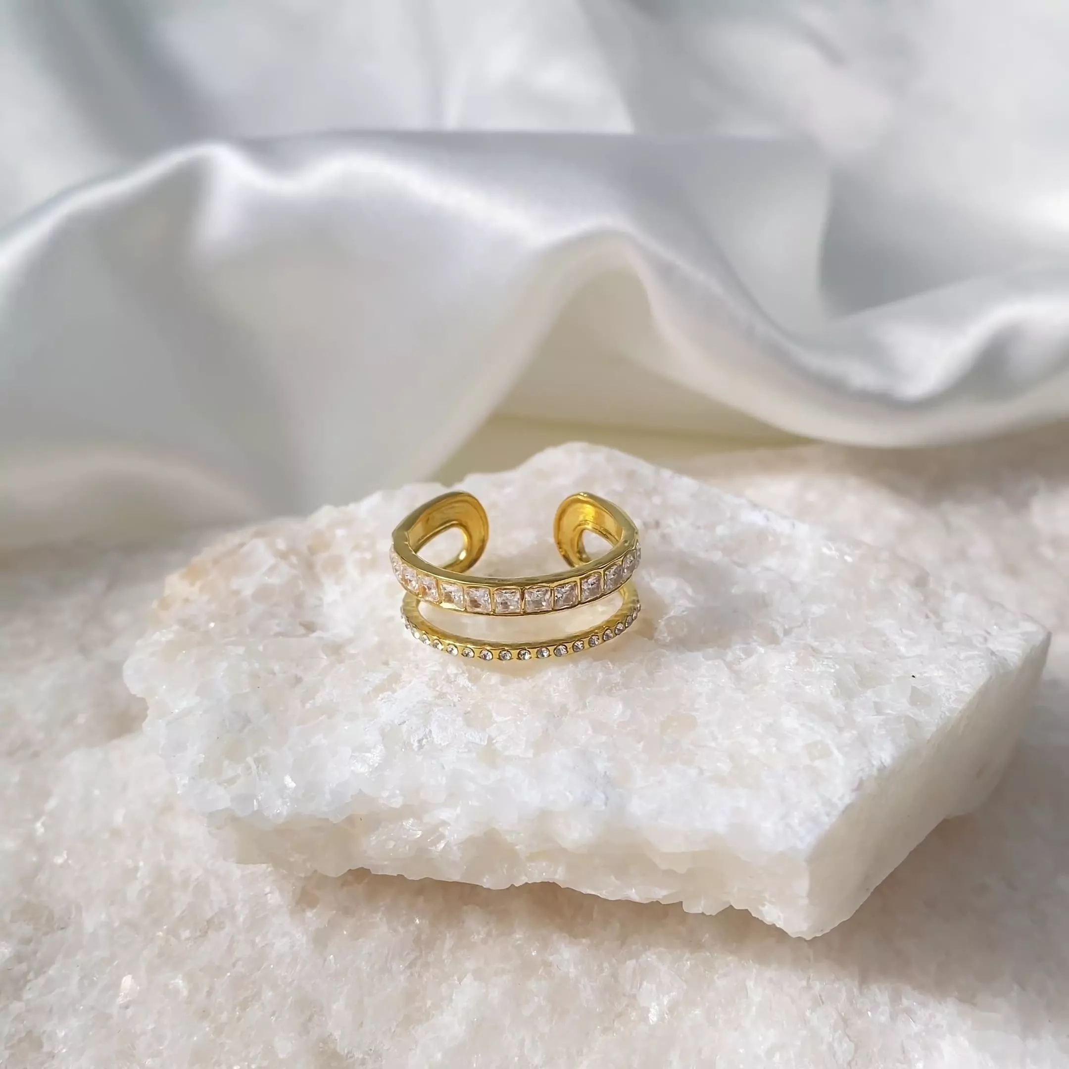 Fashionable diamond-studded two-layer stainless steel ring, popular online celebrity temperament, open and adjustable ring