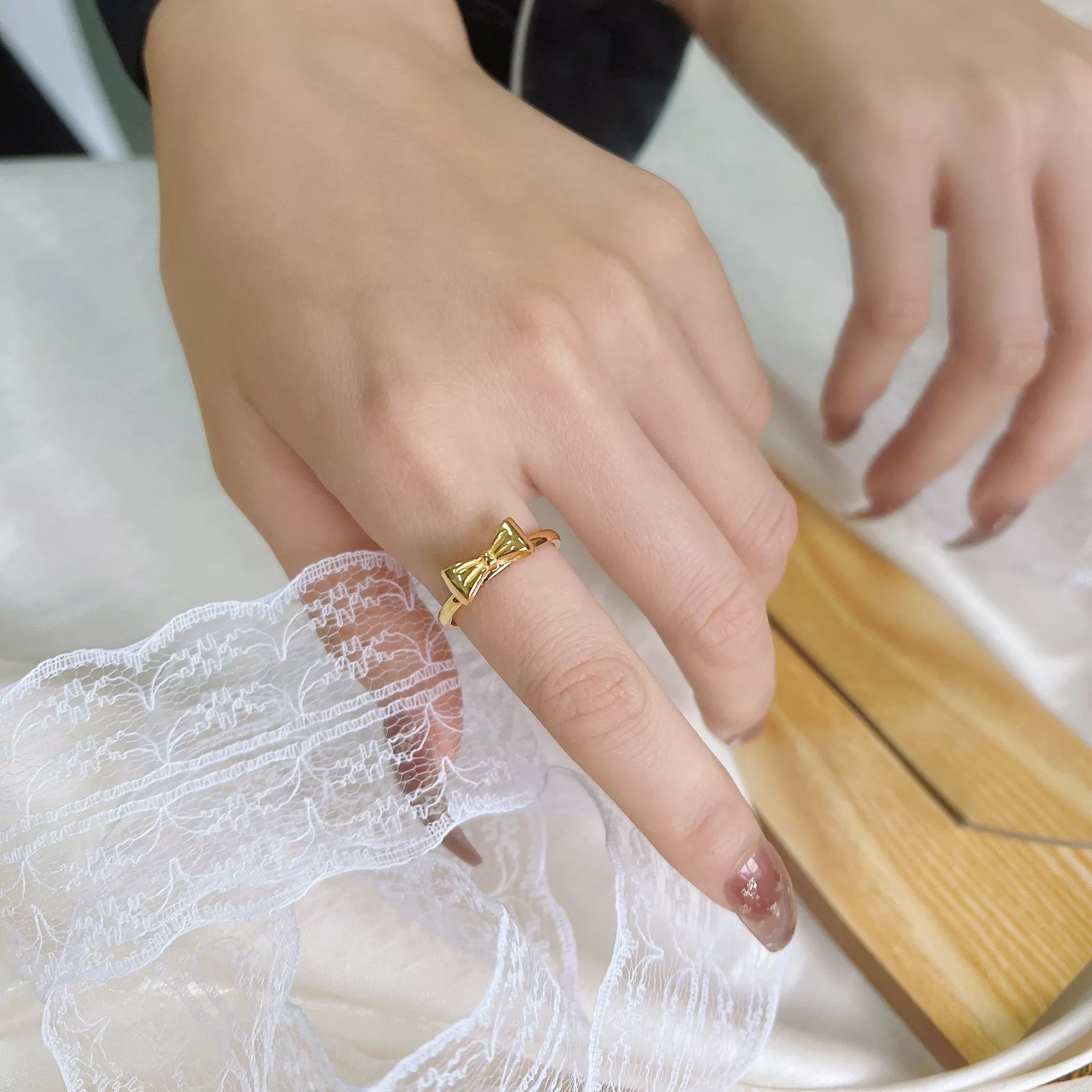 Simple bow ring women ins no fading titanium steel plated with 18K gold index finger ring