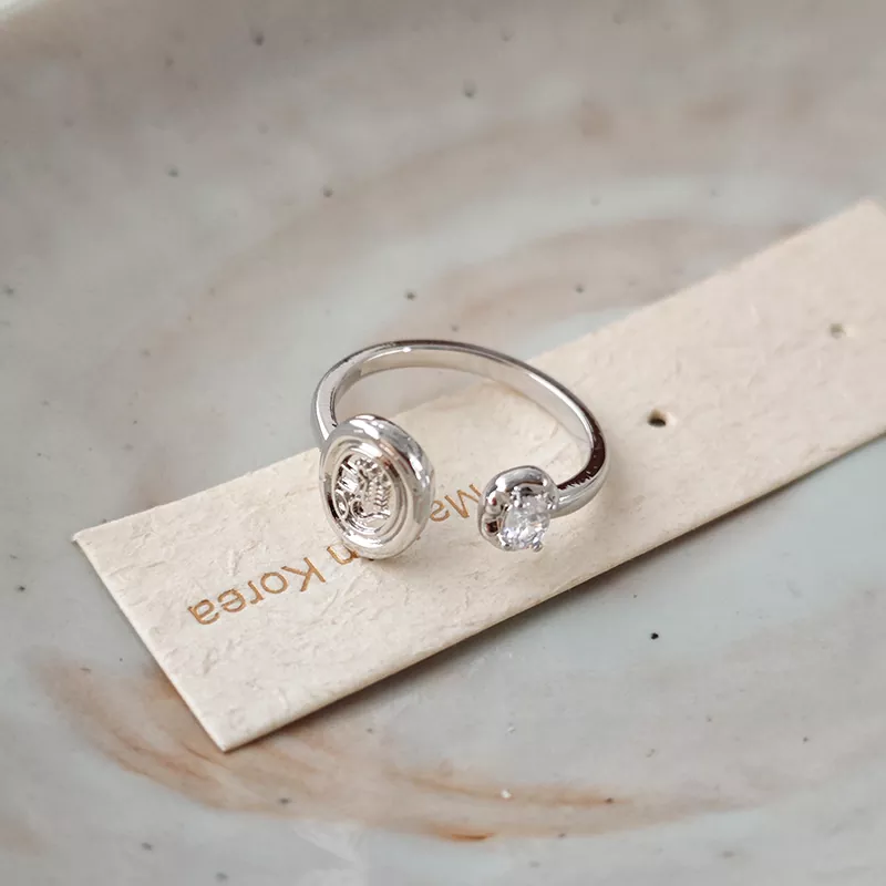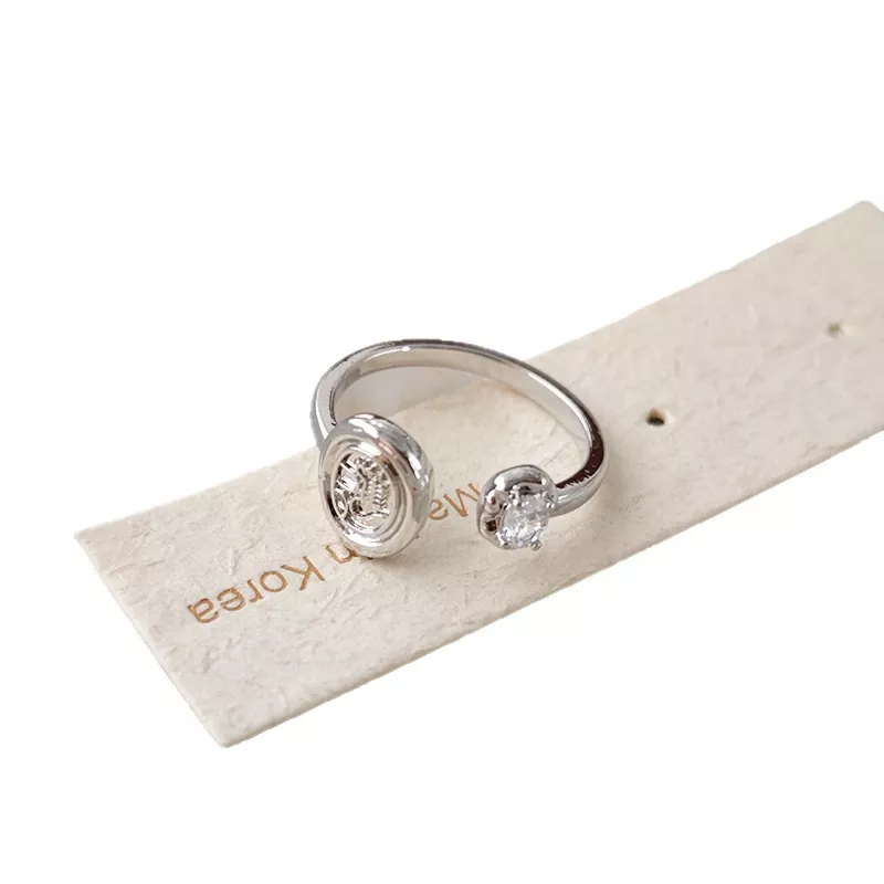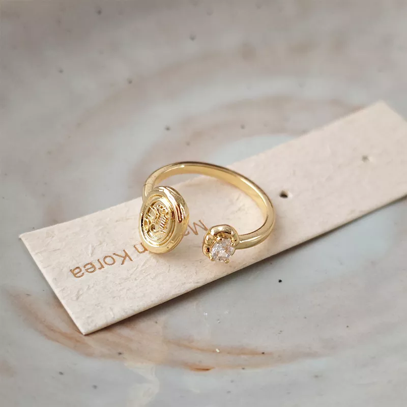Simple design zircon ancient coin ring female niche high-end luxury temperament fashion all-match index finger ring