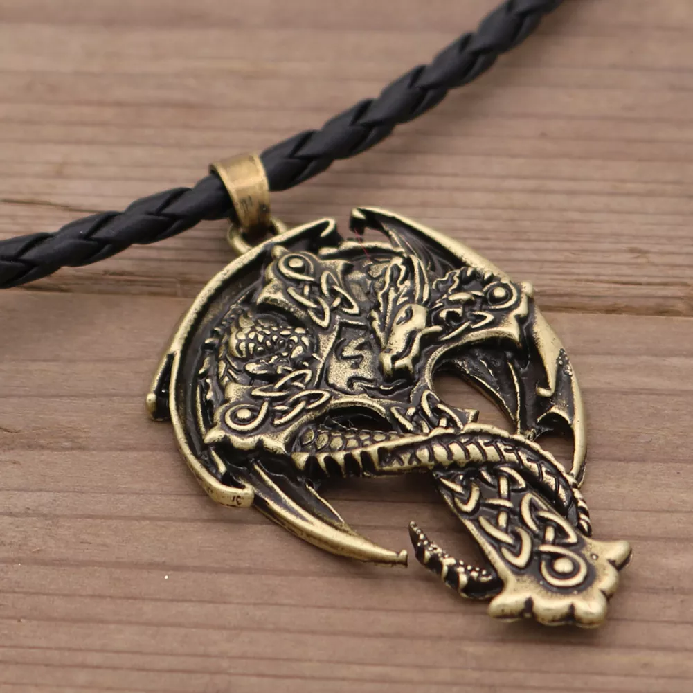 Popular Celtic Dragon Pendant Men’s Cross Necklace Religious Guardian Dragon Wing Jewelry Factory Direct Sales